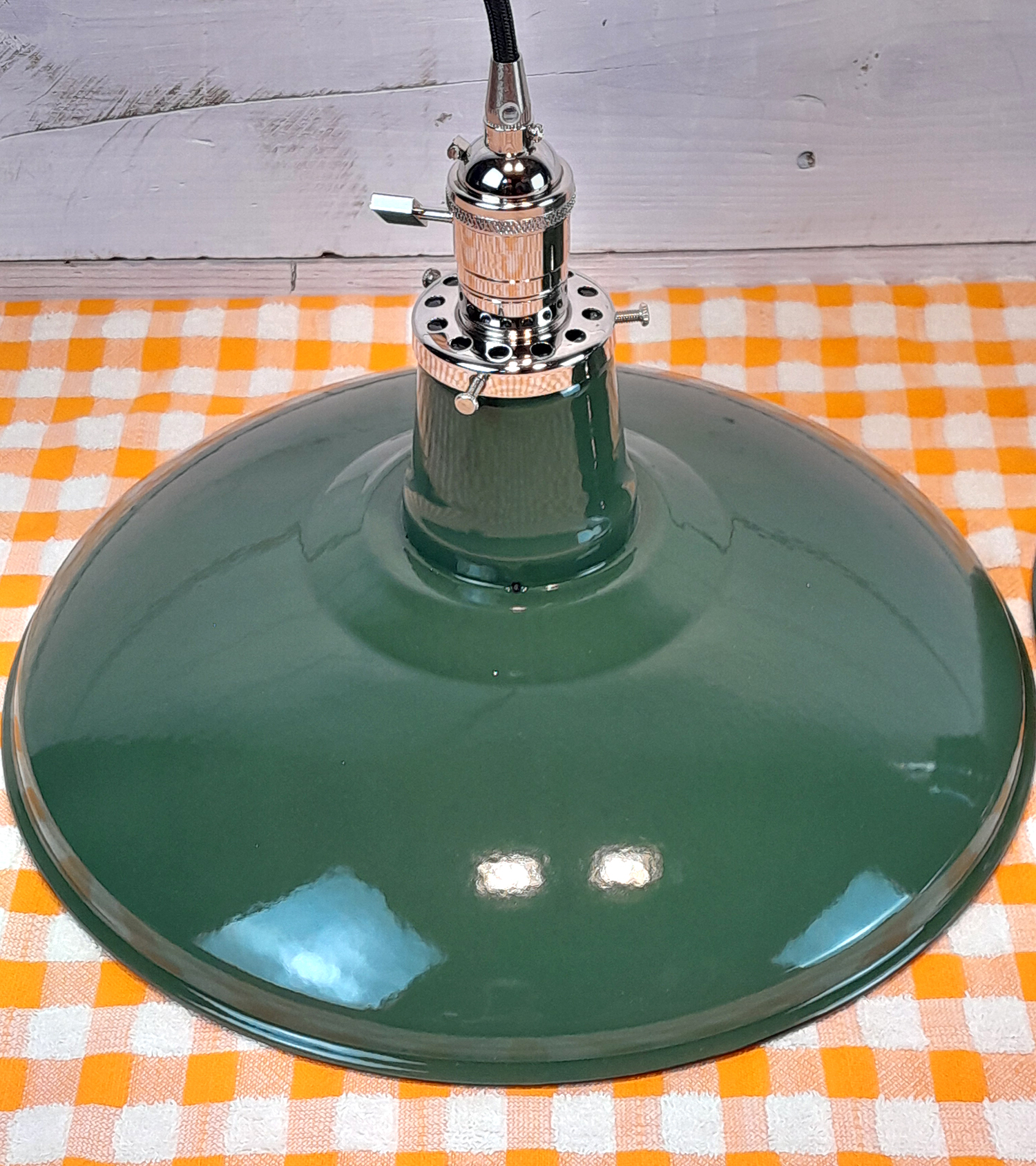 This light creates an atmosphere of “functional history.” Many of our customers tell us these shades become the primary conversation piece in their room because of the vibrant, deep forest green that only genuine porcelain can achieve.