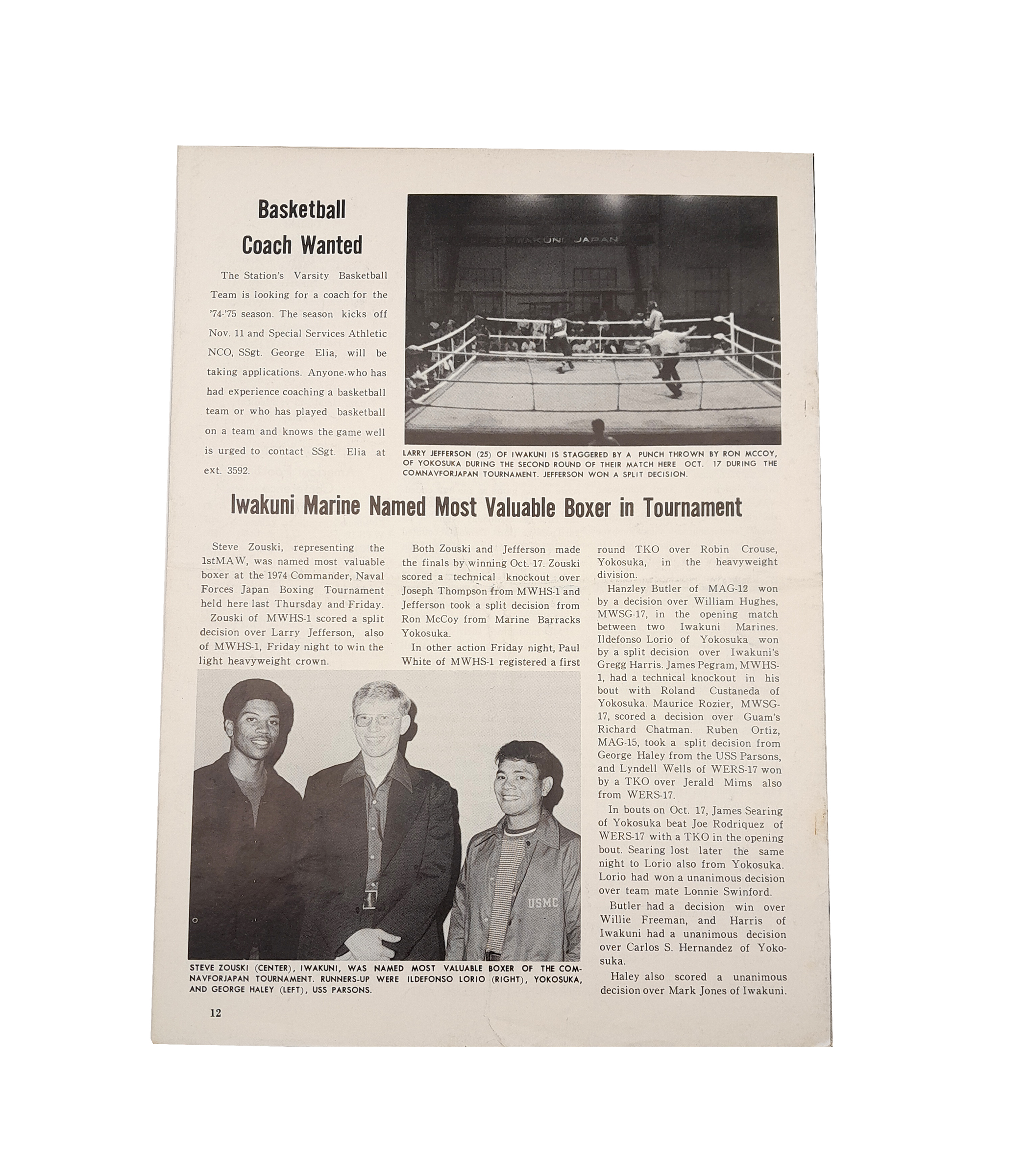 1974 MCAS Iwakuni Japan Base Magazines | Torii Teller October – November Vol 20