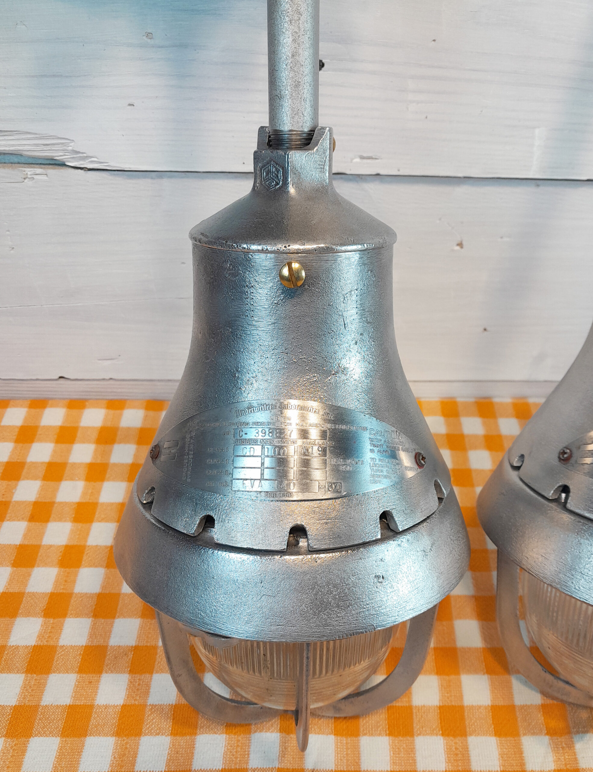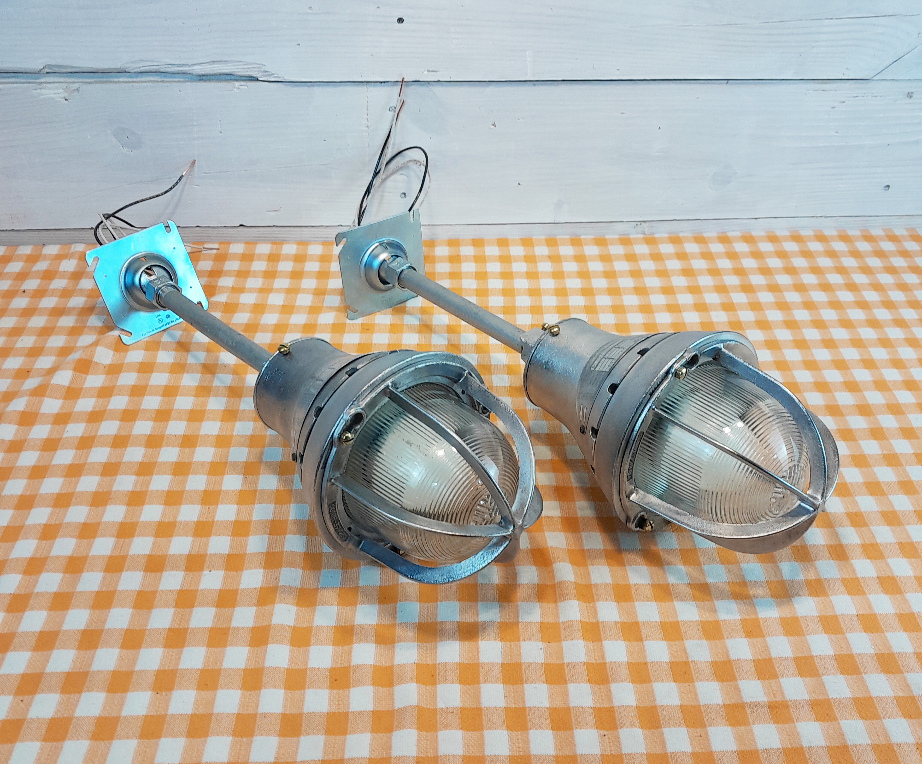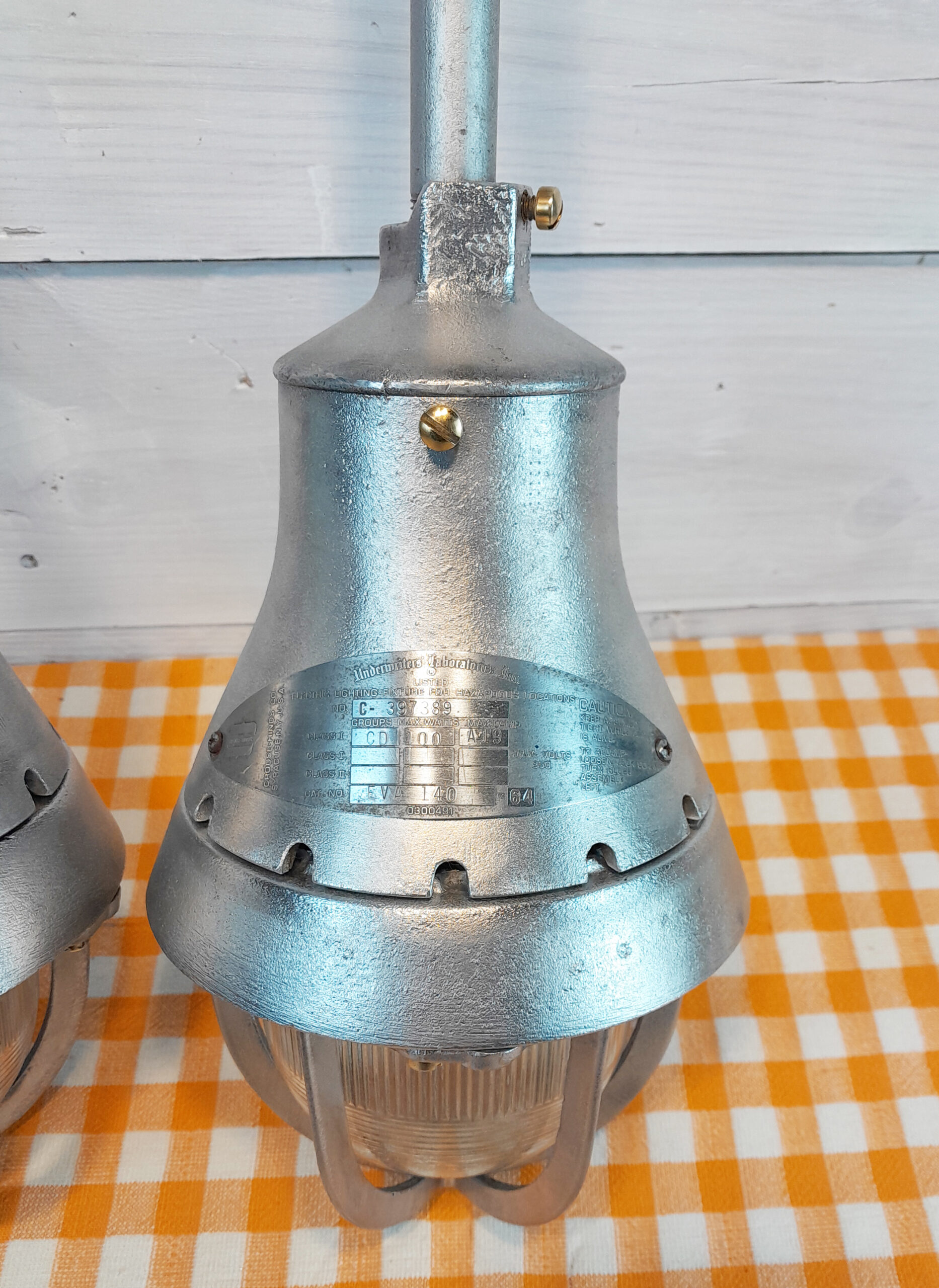 (2) Late 1950s Vintage Crouse-Hinds Explosion-Proof Pendant Lights EVA-140