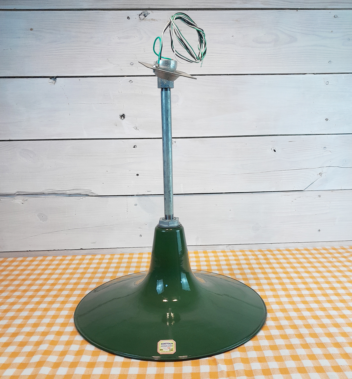 Antique 1912 Benjamin 18″ Green Porcelain Light: NOS Industrial Gas Art Deco