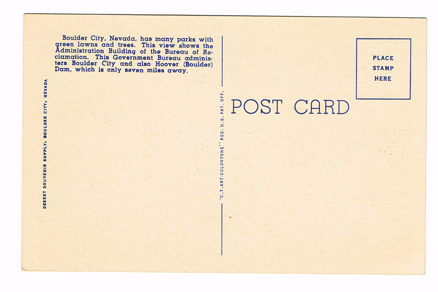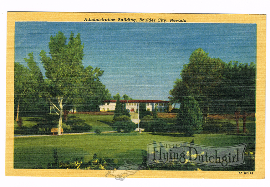 Vintage 1940’s “Admin. Building” Boulder City, Nevada. Linen Postcard