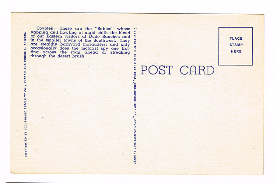Vintage 1940’s “Desert Outlaw” The Coyote, Linen Postcard