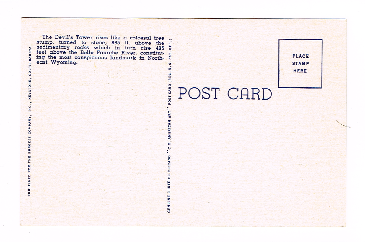 Vintage 1940’s “Devil’s Tower” Sundance, Wyo. Linen Postcard