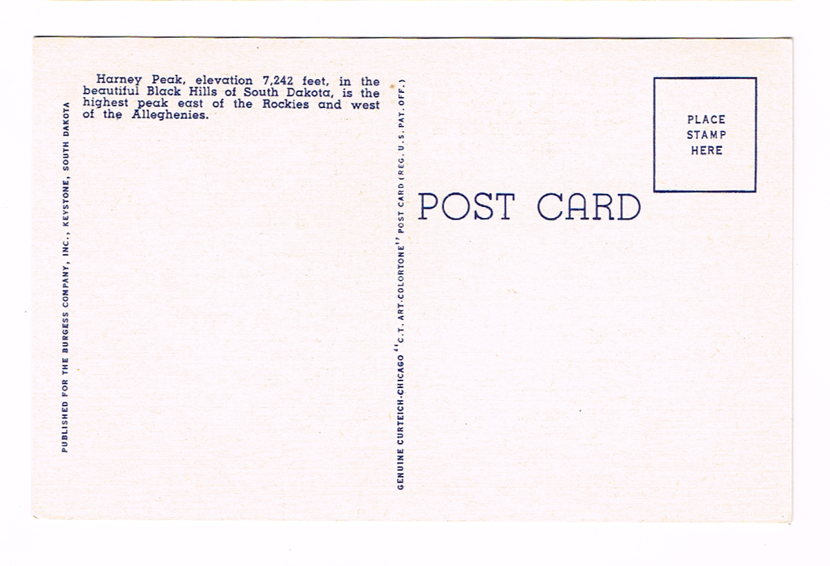 Vintage 1940’s “Harney Peak” Black Hills, S.D. Linen Postcard