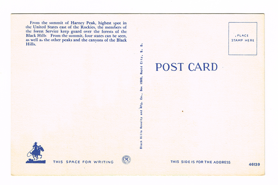 Vintage 1940’s “Harney Peak” Black Hills, S.D. Linen Postcard