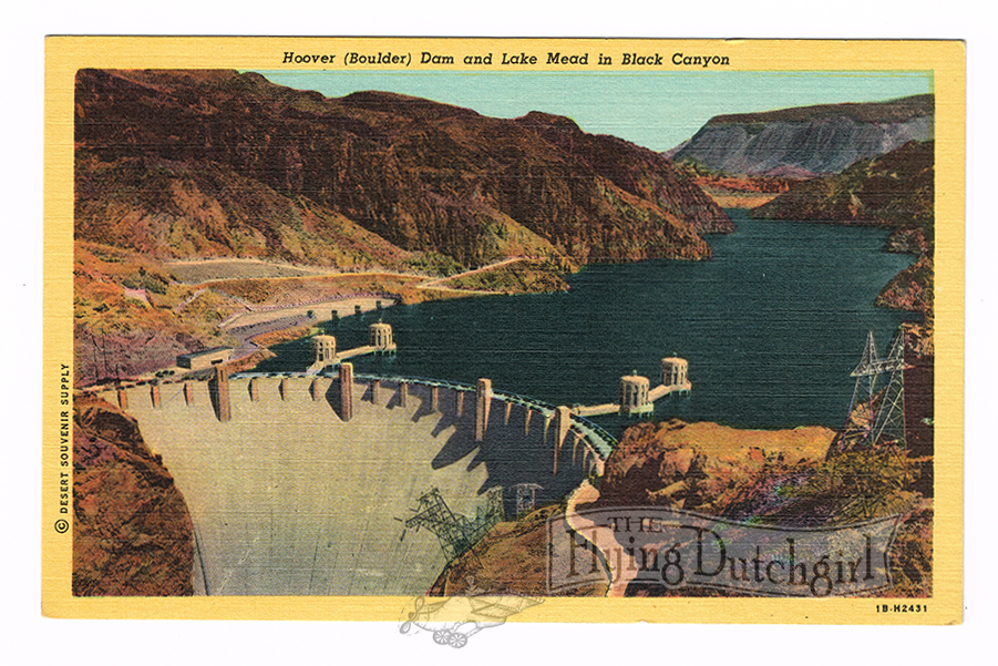 Vintage 1940’s “Hoover Dam” Lake Mead in Black Canyon, Linen Postcard