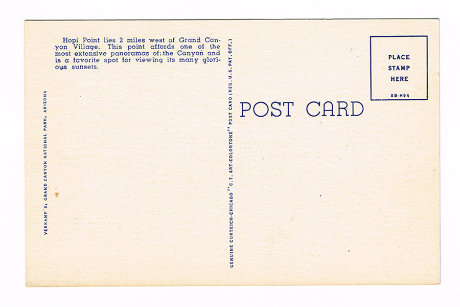 Vintage 1940’s “Hopi Point” Grand Canyon, Arizona. Linen Postcard