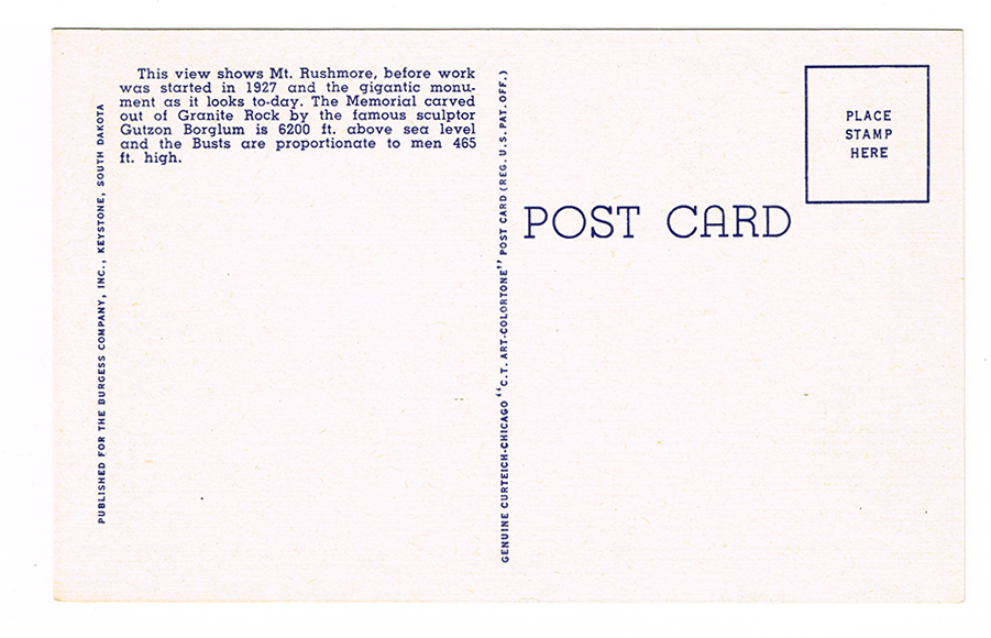 Vintage 1940’s “Mt. Rushmore” South Dakota. Linen Postcard