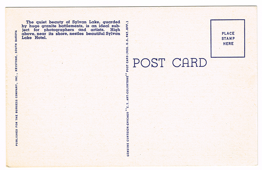 Vintage 1940’s “Sylvan Lake” Custer State Park, S.D. Linen Postcard