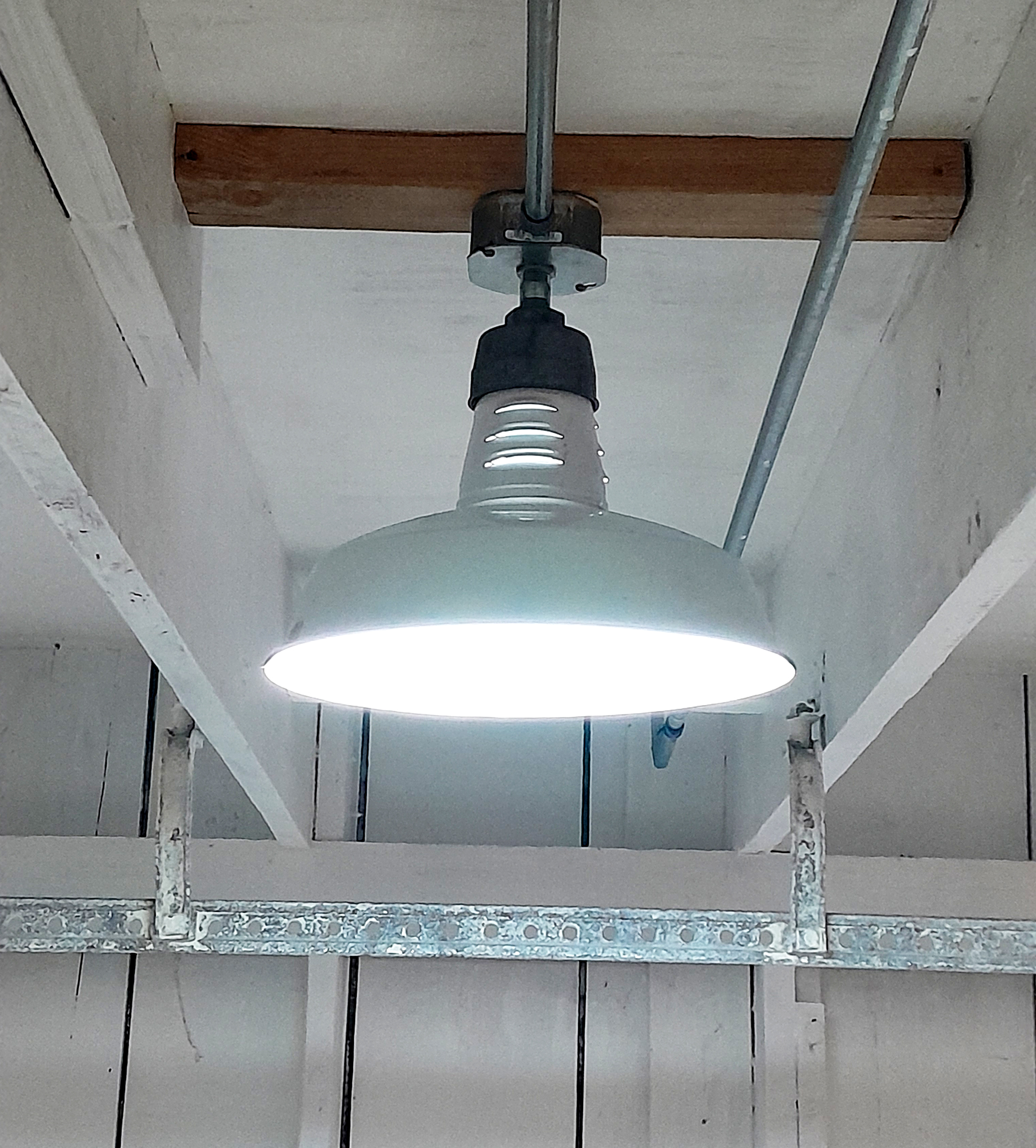 Vintage 1960s White Porcelain 14″ Hanging Light: Miller Industrial Salvage
